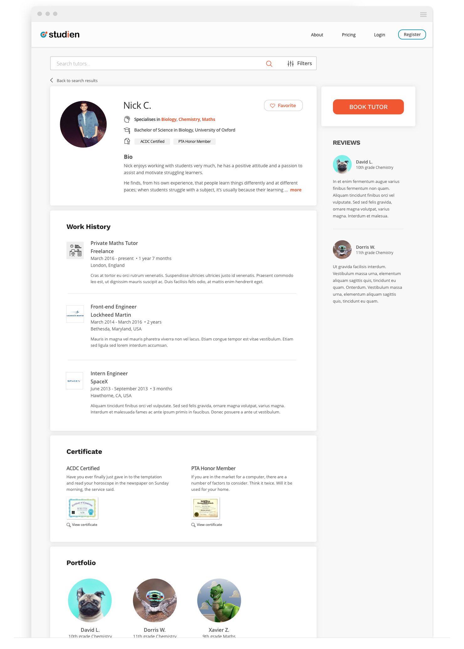 The challenge of the project was that without actual user data, neither the CEO nor I knew what the product should look like. With the goal of improving online tutoring experience in mind, we conducted competitor analysis, and developed a minimalistic style that allows students and tutors to focus on learning itself.